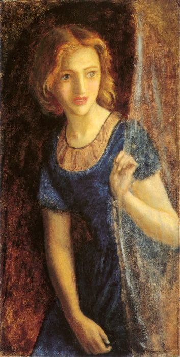 Inspired by Tennyson’s poem, Mariana: “She drew the casement-curtain by, And glanced athwart the glooming flats.” Art: Arthur Hughes (1832-1915)