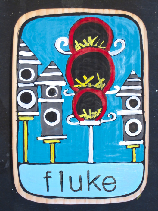 an anchor might have done it."With Surf and Oil Up, California Closes Beaches; The Washington Post; Feb 11, 1990. "Ice sculptors carved a throne resembling the fluke of a whale descending into the water." Bryan Boyhan; HarborFrost a Success; The Sag Harbor Express (New York); Feb 6, 2011. MEANING: