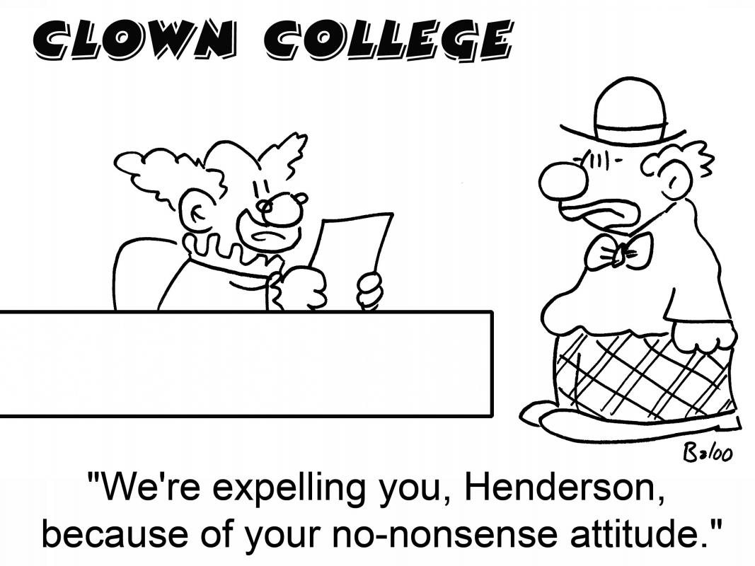“We’re expelling you, Henderson, because of your no-nonsense attitude.”