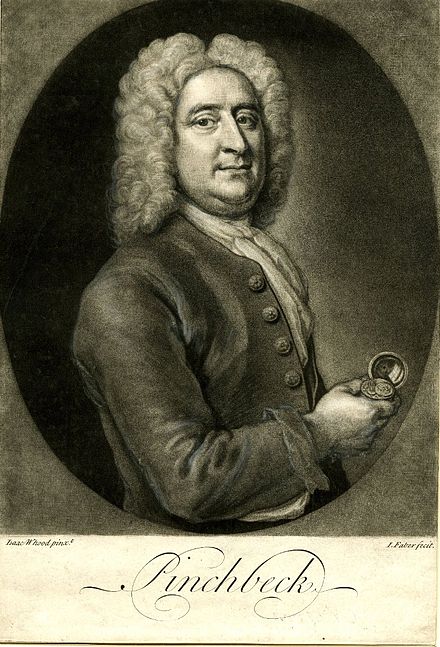 After watchmaker Christopher Pinchbeck (1670-1732), who invented it.