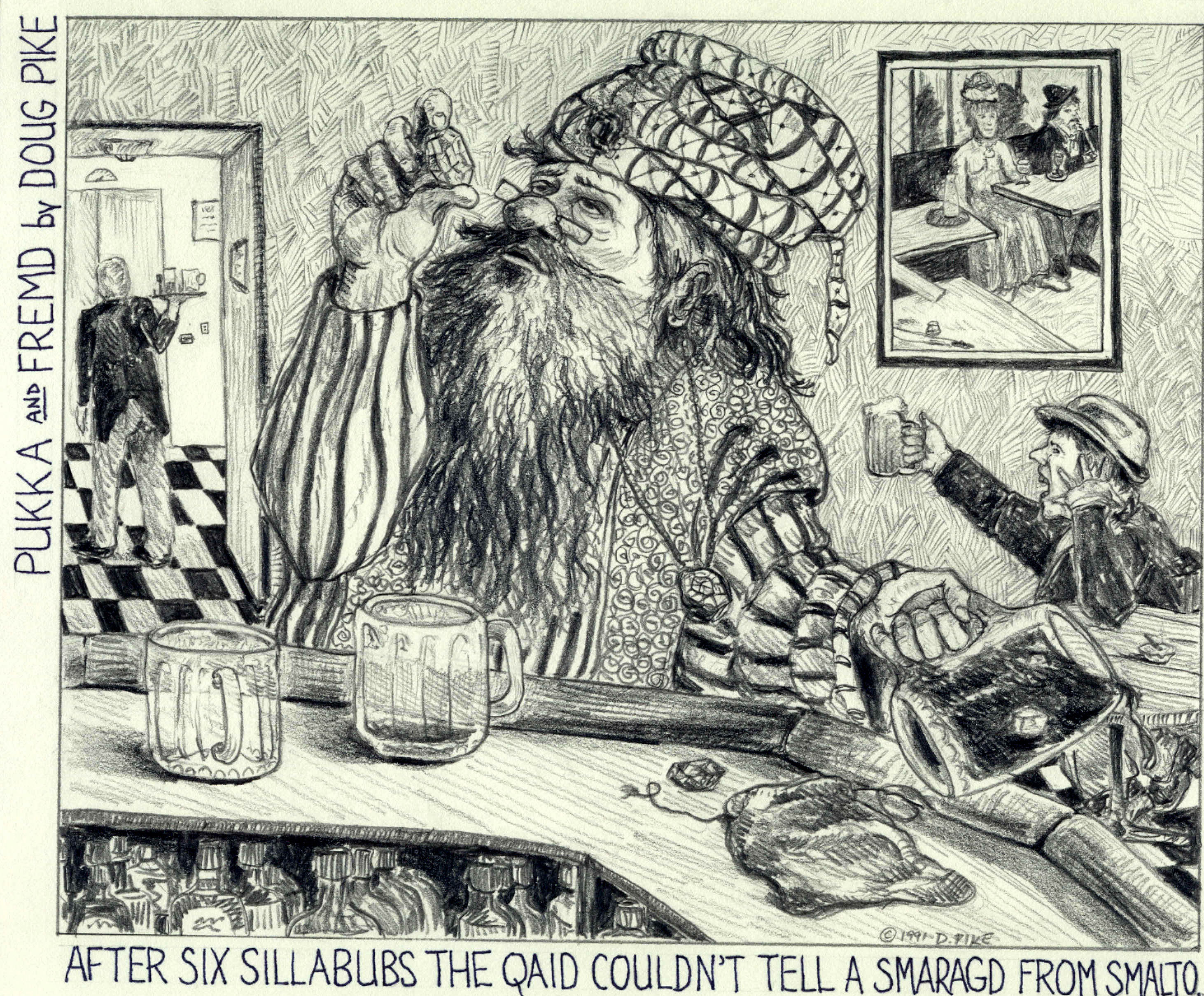 with Anu GargIf a picture is worth a thousand words, then this week we'd be featuring 5000 words. Each of this week's words is accompanied by a wonderful, whimsical illustration by cartoonist Doug Pike (dpike doubtfulaccounts.com). Besides the word of the day, each cartoon includes many other unusual words. Doug's cartoons have illustrated many magazines and his new book Gone With The Wine has just been released. smalto