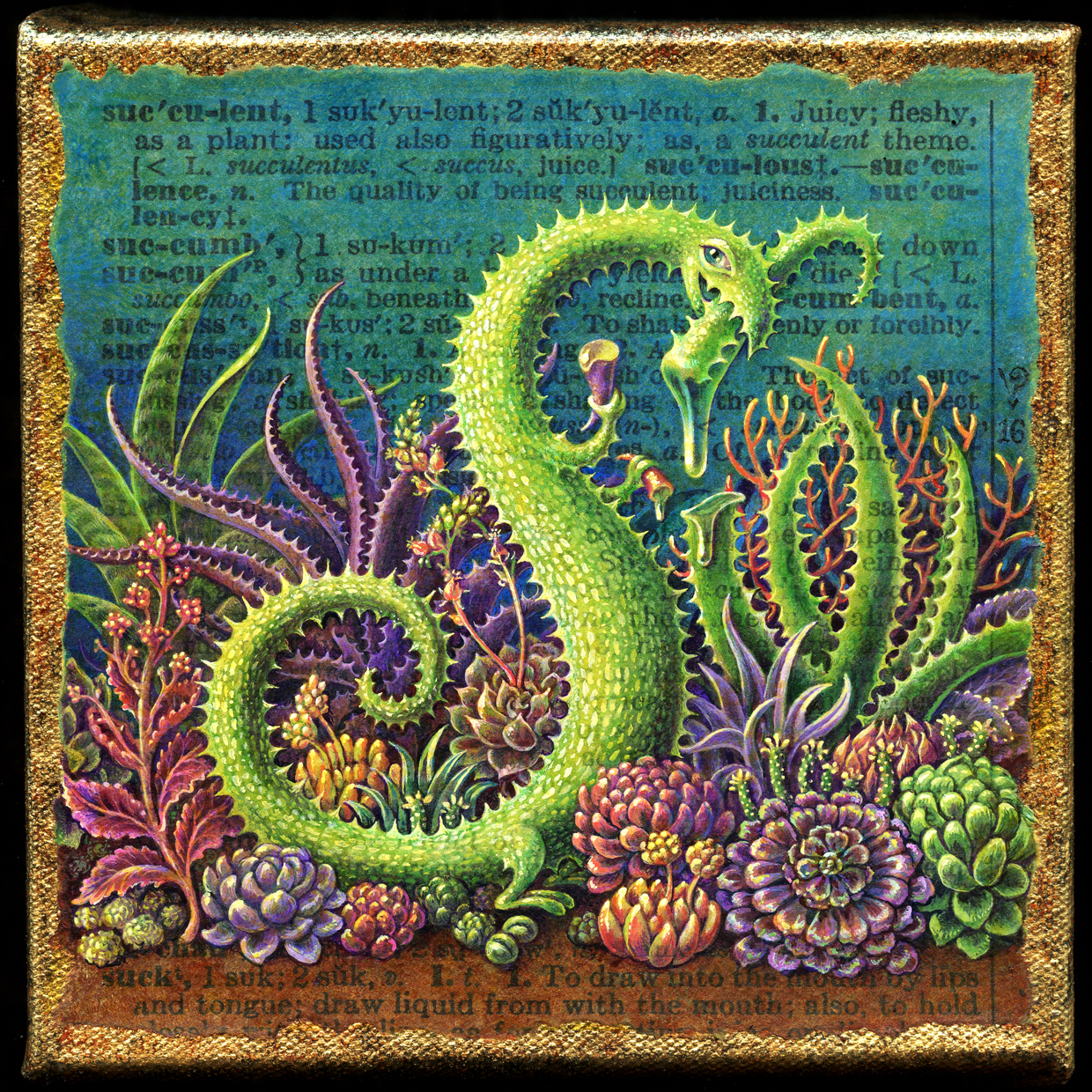 with Anu GargEarlier this year, as in the last few years, I gave a few words to the artist Leah Palmer Preiss (curiouser AT mindspring.com) and she used alchemy and gramarye and who knows what to convert those words into magical works of art. Enjoy each of this week’s words accompanied by her illustrations. See previous years’ illustrations here: 2015, 2014, 2013, 2012, 2011. succulent